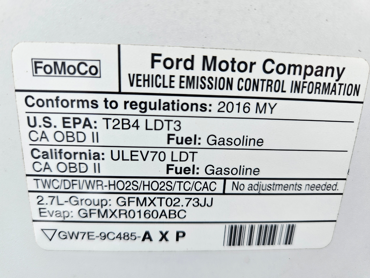 Vehicle Inquiry for 2016 Ford F-150 Reg Cab XL